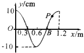 由P点向下振动知波向右传播,可见B点恰好到达最底点
