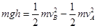 4、选择题 如图轨道是由一直轨道和一半圆轨道组成,一个小滑块从距轨道最低点B为h的A处由静止开始运动,滑块质量为m,不计一切摩擦。则(?)