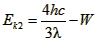 3、计算题  分别用λ和 λ的单色光照射同一金属,发出的光电子的最大初动能之比为1∶2。以h表示普朗克常量,c表示真空中的光速,则此金属板的逸出功是多大?