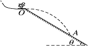 5、计算题 如图,跳台滑雪运动员经过一段加速滑行后从O点水平飞出,经3.0 s落到斜坡上的A点。已知O点是斜坡的起点,斜坡与水平面的夹角θ=37°,运动员的质量m="50" kg。不计空气阻力。(取sin37°=0.60,cos37°=0.80;g取10 m/s2)求: