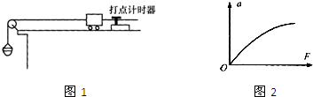 5、简答题 小明在实验室采用如图1所示装置探究“物体的加速度a与物体所受外力F、物体质量M间的关系”时,设小车及车中的砝码的总质量为M,砂及砂桶的总质量为m.