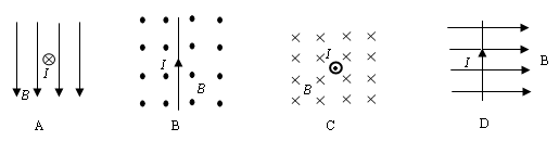 5、选择题 下图所示的四种情况,通电直导体均置于匀强磁场中,其中通电导线不受安培力的是