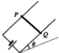 1、计算题  如图所示,两根无电阻导轨与水平面成角放置,两导轨间距离为d=0.5m,在导轨上垂直于导轨水平放一根质量m=0.2kg、长度略大于d、电阻R=4Ω的均匀金属杆,导轨下端与一个内阻r=1Ω电动势未知的电源两极相连,杆与导轨间最大静摩擦力N。当导轨间有竖直向上、磁感应强度为B=2T的匀强磁场时,杆与导轨间刚好无摩擦力。求:
