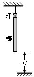 4、选择题 如图所示,一轻绳吊着粗细均匀的棒,棒下端离地面高H,上端套着一个细环。棒和环的质量均为m,相互间最大静摩擦力等于滑动摩擦力,大小为kmg(k>1)。断开轻绳,棒和环自由下落。假设棒足够长,与地面发生碰撞时,触地时间极短,无动能损失。棒在整个运动过程中始终保持竖直,空气阻力不计。则