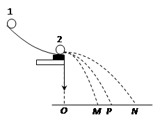 (3)不放球2,球1从槽上滚下落到P;放球2,球1从槽滚下落到M,球2落到N,若碰撞中动量守恒,则m1OP=?。
