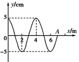 5、填空题  一列沿+x方向传播的简谐横波在t=0时刻的波形如图所示,已知波速v=20 m/s,则图中P点(坐标为x=4 m的点)开始振动的方向沿___(填“+y”或“-y”)方向,该简谐波的频率为___Hz,在0.8 s内通过的路程为___cm,该点的振动方程为y=____cm。