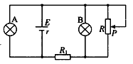 2、选择题 在如图所示的电路中,A、B两灯均正常发光,R为一滑动变阻器,P为滑动片,若将滑动片P滑动时,发现A灯变暗,则下列判断正确的是