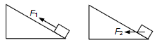 3、选择题 如图所示,分别用恒力F1、F2先后将质量为m的同一物体由静止开始沿相同的固定粗糙斜面由底端推至顶端。第一次力F1沿斜面向上,第二次力F2沿水平方向,两次所用时间相同,则在这两个过程中