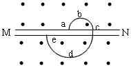 2、选择题  如图,MN是匀强磁场中的一块薄金属板,带电粒子(不计重力)在匀强磁场中运动并穿过金属板(粒子速率变小),虚线表示其运动轨迹,由图知( ? )