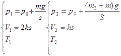 (3)现停止对气体加热,同时在活塞上缓慢添加砂粒,当添加砂粒的质量为m0时,活塞恰好回到原来的位置,求此时气体的温度。