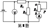 2、选择题  如图电路中,在滑动变阻器的滑片P向上端a滑动过程中,两表的示数情况为: