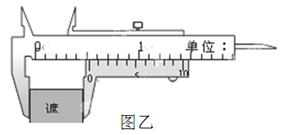 (2)如图乙所示,用游标卡尺测得遮光条的宽度d= cm;实验时将滑块从图示位置由静止释放,由数字计时器读出遮光条通过光电门的时间Δt=2.0×10-3s,则滑块经过光电门时的瞬时速度为 m/s.