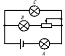 3、选择题 如图所示,当滑动变阻器滑动触头向右移动时,灯泡A、B、C的亮度将 ( )