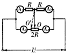 1、选择题 如图所示电路,总电压U保持不变,滑动变阻器总电阻为2R,当滑片位于变阻器中点O时,四个电流表A1、A2、A3、A4的示数相等,都等于I0,当滑片向左移到O"点时