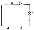 3、选择题 在如图所示电路中,E为电源,其电动势E=9.0 V,内阻可忽略不计;AB为滑动变阻器,其电阻R=30 Ω;L为一小灯泡,其额定电压U=6.0 V,额定功率P=1.8 W;S为开关,开始时滑动变阻器的触头位于B端,现在接通开关S,然后将触头缓慢地向A端滑动,当到达某一位置C处时,小灯泡刚好正常发光,则CB之间的电阻应为
