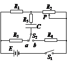 3、选择题 如图所示的电路,R1=R3=R4=R5=R,滑动变阻器R2的总电阻为2R,其滑片P恰处在正中,电源的内阻不计,电键S1闭合,单刀双掷开关S2合在a端,此时平行板电容器C的带电量为Q,如果将R2的触片滑到最右端