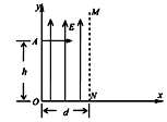 5、计算题 (12分)如图所示,在空间中取直角坐标系oxy,在第一象限内平行于y轴的虚线MN与y轴距离为d=4cm,从y轴到MN之间的区域充满一个沿y轴正方向的匀强电场,场强大小为E=375V/m.初速度可以忽略的带负电粒子经过另一个电势差为U=10V的电场加速后,从y轴上的A点以平行于x轴的方向射入第一象限区域, OA的距离h=4.5cm.已知带电粒子的比荷为