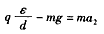 当小球带负电时,小球所受电场力与重力方向相反,向上做加速运动以a2表示其加速度,t2表示从B板到A板所用的时间,则有