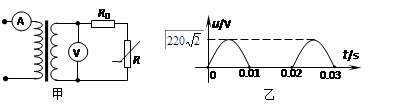 2、选择题 如图甲所示的电路中,理想变压器原、副线圈匝数比为5︰l,原线圈接入图乙所示的电压,副线圈接火灾报警系统 (报警器未画出),电压表和电流表均为理想电表,R0为定值电阻,R为半导体热敏电阻,其阻值随温度的升高而减小。下列说法中正确的是(?)