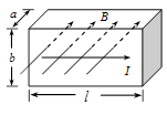 如图所示,一段长方体金属导电材料,厚度为a、高度为b、长度为l,内有带电量为e的自由电子。该导电材料放在垂直于前后表面的匀强磁场中,内部磁感应强度为B。当有大小为I的稳恒电流垂直于磁场方向通过导电材料时,在导电材料的上下表面间产生一个恒定的电势差U。求解以下问题: