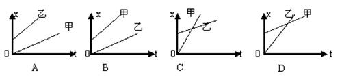 本题解析:由于甲的速度大于乙的速度,所以在x-t图像中家的倾斜程度大于乙的,且t = 0时乙在甲的前面一定的距离处,说明正确答案为C