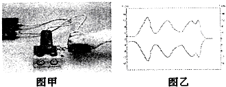 4、选择题 图甲为传感器显示变速运动中两物体的作用力与反作用力的实验装置,图乙为两个钩子的受力情况,横坐标是时间,纵坐标是力的大小,假设桌面是光滑的.则从图象上可获得的信息有( )