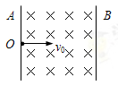 5、计算题 (14分)如图所示,两平行板AB之间存在垂直纸面向里的匀强磁场,两板之间距离及板长均为d。一质子以速度v0从A板中点O垂直A板射入磁场,为使质子能从两板间射出,试求磁感应强度大小的范围。(已知质子的电荷量为e,质量为m)