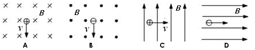 5、选择题 如图所示,带电粒子所受洛伦兹力方向垂直纸面向外的是 ( )