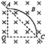 4、选择题 如图所示.AC是一个用长为L的导线弯成的、以O为圆心的四分之一圆弧,将其放置在与平面AOC垂直的磁感应强度为B的匀强磁场中.当在该导线中通以由A到C,大小为I的恒定电流时,该导线受到的磁场力的大小和方向是( )