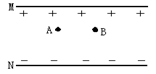 3、选择题 两块平行金属板M、N水平放置.带电情况如图所示,其内部空间有两个悬浮着的小带电液滴A和B,采用以下哪些办法可使液滴向上做加速运动 (? )