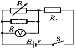2、简答题 在如图所示电路中,定值电阻R0=2Ω,安培表和伏特表均为理想电表.闭合开关K,当滑动变阻器Rx滑片P从一端移向另一端时,发现电压表的电压变化范围为0V到3V,安培表的变化范围为0.75A到1.0A.求: