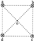 4、选择题 已知长直通电导线在其周围某点产生磁场的磁感应强度与该导线中的电流成正比,与该点到导线的距离成反比.如图所示,a、b、c、d四根长直通电导体棒平行放置,它们的横截面构成一个正方形,O为正方形中心,a、b、d中电流方向垂直纸面向里,c中电流方向垂直纸面向外,电流大小满足:Ia=Ic=Id<Ib,则关于a、b、c、d长直通电导线在O点产生合磁场的方向可能是( )