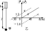 (1)如果实验中所得到的T2-l图像如图乙所示,那么对应的图像应该是a、b、c中的_____________。