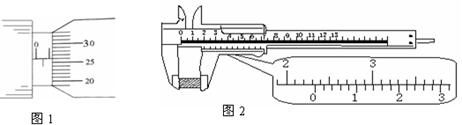 2、填空题 用螺旋测微计测量一长方体形导体厚度时,示数如图1所示,用游标卡尺(游标尺上有50个等分刻度)测定其宽度时,示数如图2所示,该导体厚度为 mm;宽度为 mm.。