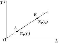 3、填空题 利用单摆周期公式测重力加速度时,测出几组摆长和相应周期T,并作出了T2L图线,如图所示,已知图像与横轴间的夹角为θ,图线上A、B两点的坐标分别为(x1,y1),(x2,y2),则可以得重力加速度g=________.