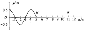 5、选择题  一列简谐横波沿x轴正向传播,传到M点时波形如图所示,再经0.6 s,N点开始振动,则该波的振幅A和频率f为