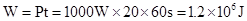 4、选择题 一电熨斗的铭牌标有“220V-1000W”字样,则它正常工作20分钟电流做功为( )