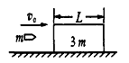 4、计算题 如图所示,质量为3m、长度为L的木块置于光滑的水平面上,质量为m的子弹以初速度v0水平向右射入木块,穿出木块时速度为2v0/5,设木块对子弹的阻力始终保持不变。