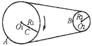 5、填空题 如图所示,一个大轮通过皮带拉着一个小轮转动,假设皮带和两轮之间没有打滑,而且R1=2R2,C为R1的中点,那么: