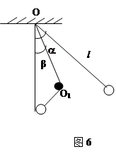 2、计算题 (7分)如图6所示,质量为m的小球,用不可伸长的线悬于固定点O,线长为l,初始线与铅垂线有一个夹角,初速为0. 在小球开始运动后,线碰到铁钉O1. 铁钉的方向与小球运动的平面垂直. OO1=h<l,且已知OO1与铅垂线夹角为β. 假设碰后小球恰能做圆周运动. 求线与铁钉碰前瞬时与碰后瞬时张力的变化.