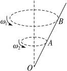 ,杆以O为支点绕竖直线旋转.质量为m的小环套在杆上可沿杆滑动,当杆的角速度为ω1时,小环旋转平面在A处;当杆角速度为ω2时,小环旋转平面在B处,设环在A、B两处对杆的压力分别为N1、N2.则有( )