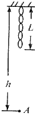 4、计算题 如图所示,一根长L=1.8m的铁索从楼顶自由下落,则此铁索经过楼顶下距楼顶h=5m的A点,需时间为多少?g=10m/s2。