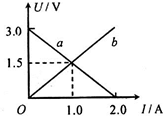 3、选择题 在如图所示的U-I图象中,直线a为某电源的路端电压U与干路电流I的关系图象,直线b为某电阻R的伏安特性曲线.用该电源和电阻R连接成闭合电路,由图象可知( )