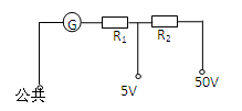 本题解析:解答:解:(1)接5V量程时,为串联的R1,则R1=