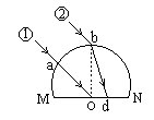 半径为R的半圆柱形玻璃砖,截面如图所示,O为圆心,光线①沿半径方向从a处进入玻璃砖后,恰在O点发生全反射,则另一条平行于光线①的光线②从最高点b进入玻璃砖后,折射到MN上的d点,求od=?(ao与MN夹角为60°)