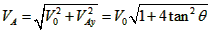 2、计算题  如图所示,一高台滑雪爱好者经过一段滑行后以水平速度V0从倾角为θ的斜坡上的O点飞出,不计空气阻力,他落到斜面上的A点,求所用的时间和落地速度大小。