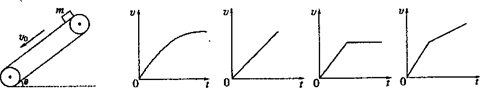 1、选择题  如图所示,足够长的传送带与水平面间夹角为,以速度逆时针匀速转动。在传送带的上端轻轻放置一个质量为m的小木块,小木块与传送间的动摩擦因数。则下图中能客观地反映小木块的速度随时间变化关系的是