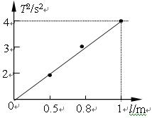 (2)(2分)为了提高实验精度,在试验中可改变几次摆长l,测出相应的周期T,从而得出一组对应的l与T的数值,再以l为横坐标T2为纵坐标,将所得数据连成直线如图所示,则测得的重力加速度g=?。