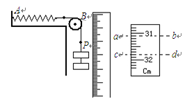 4、填空题 如图所示的装置可用来测定弹簧的劲度系数.被测弹簧一端固定于A点,另一端用细线绕过定滑轮挂钩码,旁边附有一竖直放置的刻度尺.当挂两个钩码时,线上一定点P对应的刻度线如图中的ab虚线所示,当挂三个钩码时,线上一定点P对应的刻度线如图中的cd虚线所示.已知每个钩码的质量为50g,重力加速度g取9.8m/s2,则被测弹簧的劲度系数为?N/m.