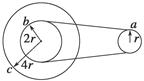 1、选择题 如图所示为皮带传动装置,右轮的半径为r,a是它边缘上的一点,左侧是一轮轴,大轮的半径是4r,小轮的半径是2r,b点和c点分别位于小轮和大轮的边缘上,在传动过程中皮带不打滑,则